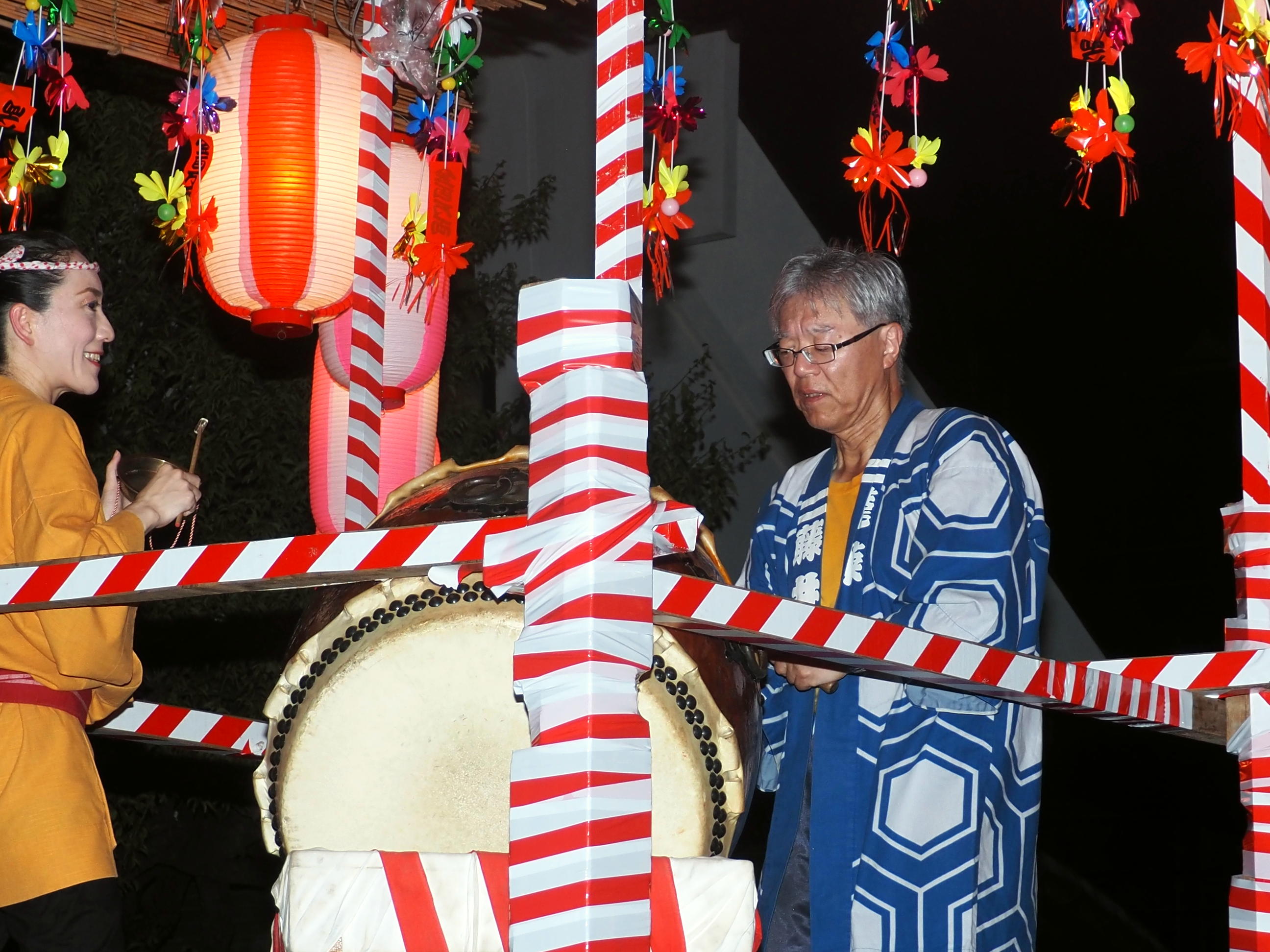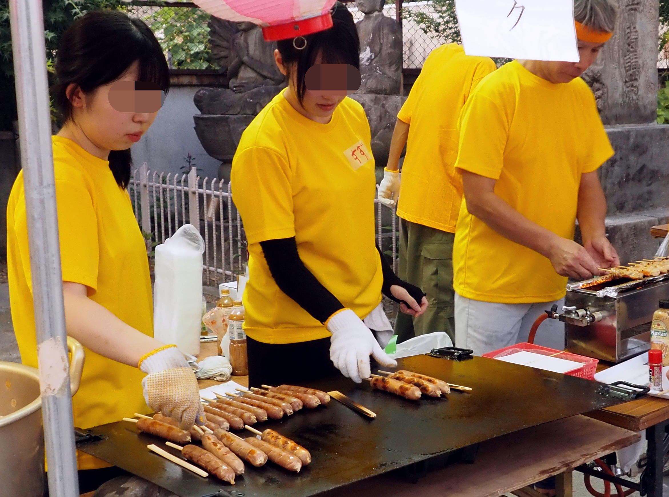 令和元年 大観音盆踊り大会 隔年で開催している蓬莱町会大観音盆踊り大会が、令和元年8月23日金曜日、24日土曜日の両日、光源寺(大観音)境内で行われました。 雨が危ぶまれる中、本番では奇跡的に雨がやみ、恒例の駒込学園高校和太鼓部の皆さんによる勇壮な和太鼓演奏でスタート。 やきそば、かき氷、フランクフルト、味噌おでん、ビール、ウーロンハイ、ソフトドリンク、焼き鳥の屋台に、似顔絵かき、飴細工、ヨーヨー釣り、ひもくじ、サイコロゲーム、射的、釣りゲーム、輪投げのゲームコーナーも出店しました。 盆踊りにも大変多くの方が踊りに参加していただき、会場は熱気に包まれ、大盛況に終わりました。 また今回ご協力頂いた光源寺、白山上向丘商店街、大観音通り商栄会、上千駄木町会、千駄木西林町会、肴町町会、駒本小学校、駒込学園和太鼓部、東洋大学学生ボランティアセンター、東洋大学剣道部、郁文館夢学園、居酒屋まぬけの皆様には感謝致します。御礼申し上げます。 Tags: 蓬莱町蓬莱町会盆踊り大観音学ボラ郁文館 令和元年 大観音盆踊り大会 についてもっと読むコメントを投稿するにはログインしてください